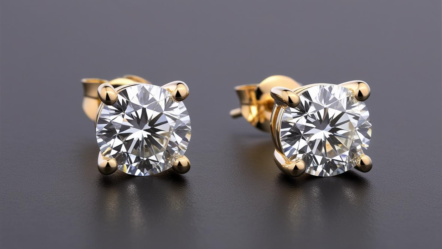14k Gold Natural Diamond Stud Earrings - Four Prong Setting